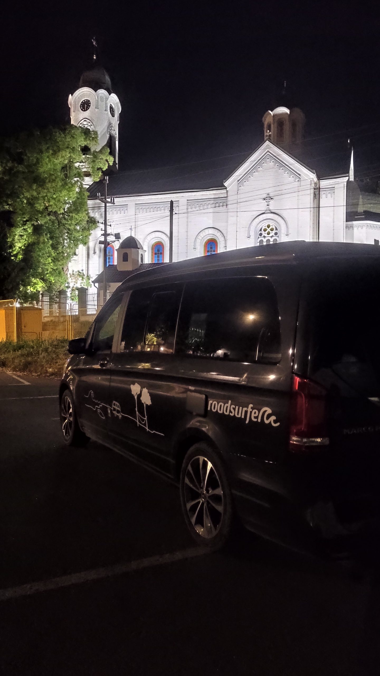 Mais ne grillons pas les étapes, parlons du spot pour dormir, difficile de se retrouver sans GPS, même le Coyotte n’est pas supporté dans ce pays , il nous restait que le GPS interne de la voiture, on devait dormir près du danube, mais le GPS nous amène dans des chemins en sable, on se serait cru au pris dakar… bref fini les bêtises on va au bout de 30 minutes retrouver la vraie route et dormir à côté d’une église.